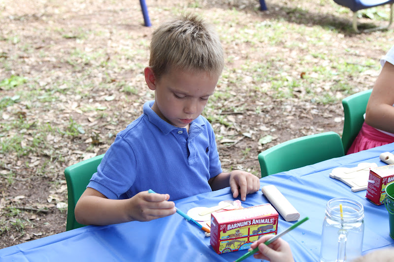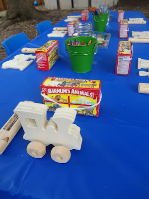 Each child had a wooden choo choo to paint and color, a train whistle and some animal crackers.